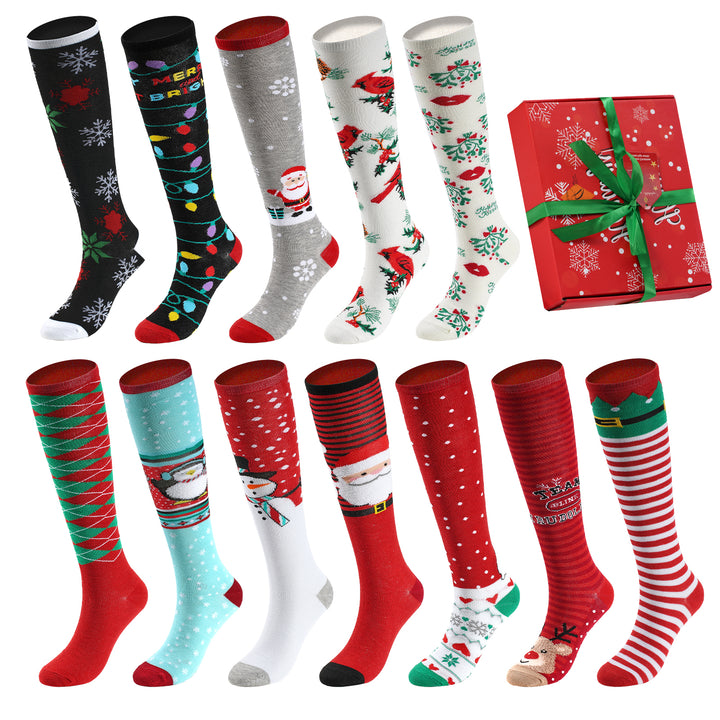 12-Pair Women’s Knee-High Christmas Socks — (Size 9–11)