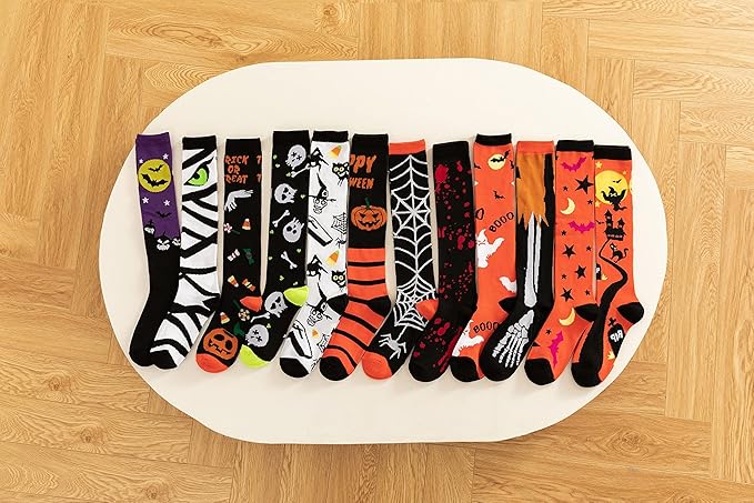 12 pairs knee-high Halloween socks — wholesale / bulk pack